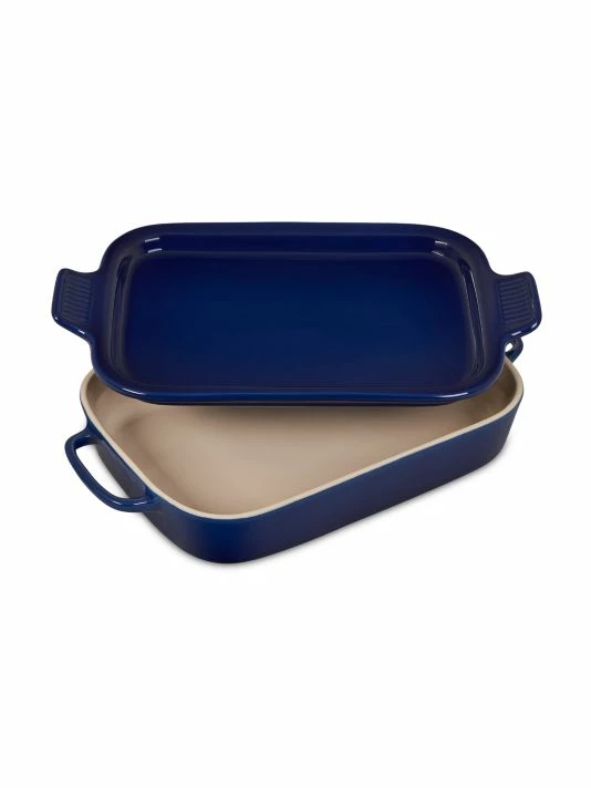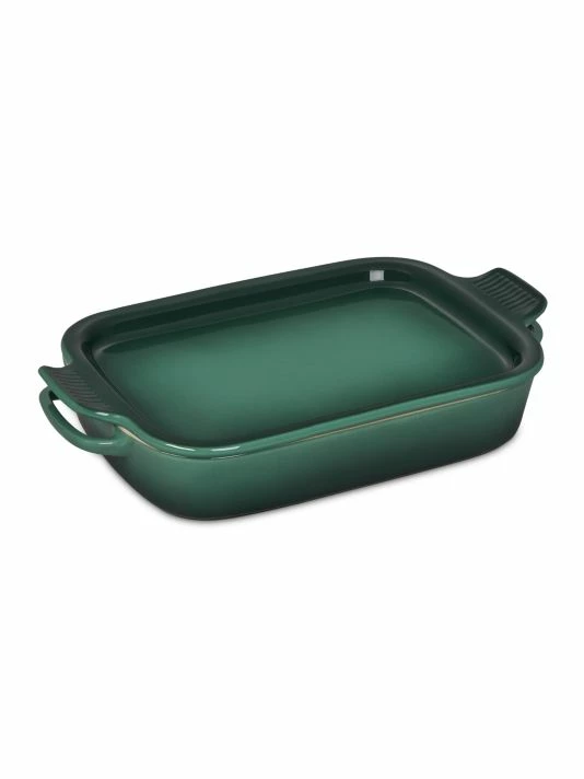 This durable stoneware dish is designed for a multitude of kitchen tasks, whether baking desserts, oven-roasting meats, broiling fish, or simply marinating before cooking.Use the accompanying platter lid to serve after grilling or cooking. 10-year warranty.