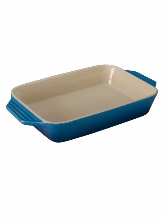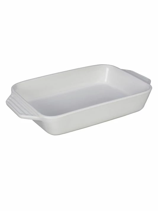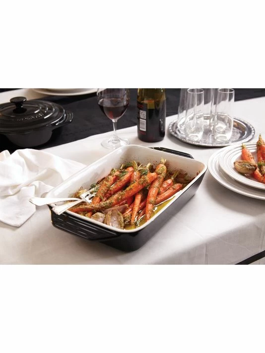 - Le Creuset’s newest line of stoneware features improved performance and contemporary design. The enameled base minimizes moisture absorption, while lengthened handles make for easier carrying.