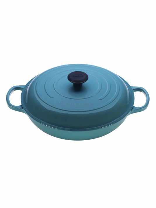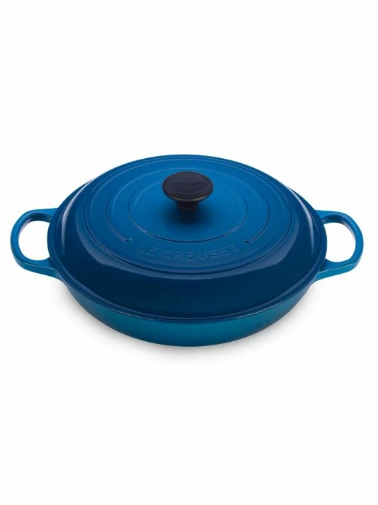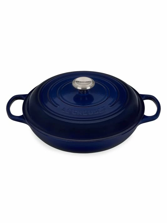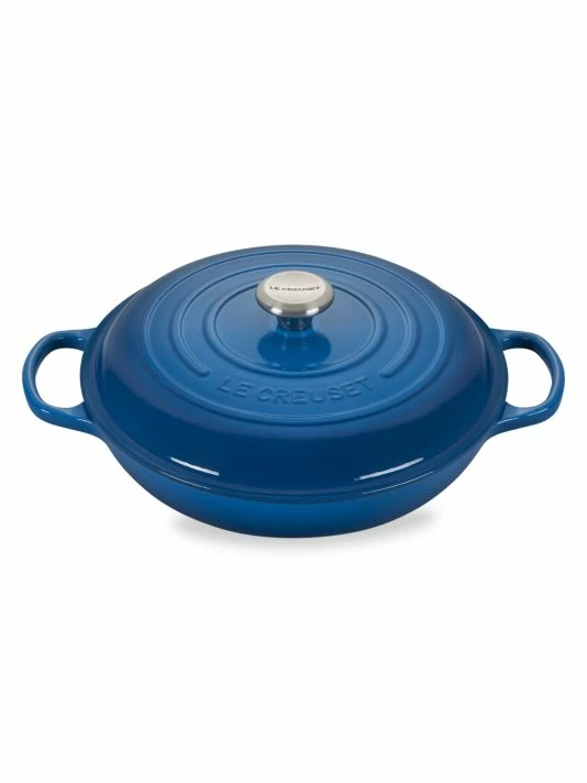 Crafted from heavy stoneware, Le Creuset cookware is the ultimate ingredient for chefs and home cooks worldwide. With its recessed-edge lid, this enameled cast iron oven masters slow cooking, evenly distributing and retaining heat. Not only does the lid provide an effective moisture and heat lock for the dish, but it prevents spills and protects its contents.