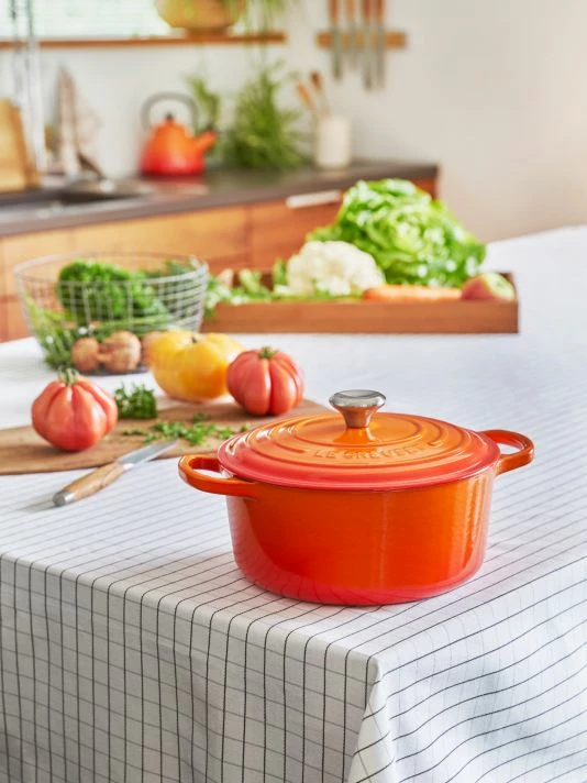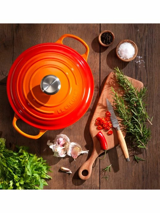 The iconic Le Creuset Dutch Oven is known for its strength and ability to maintain even and consistent heat. The enameled Dutch oven needs no seasoning and is suitable for both stovetop and oven use. Each piece is handmade and maintains the tradition of the finest culinary craftsmanship.