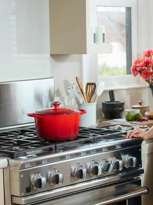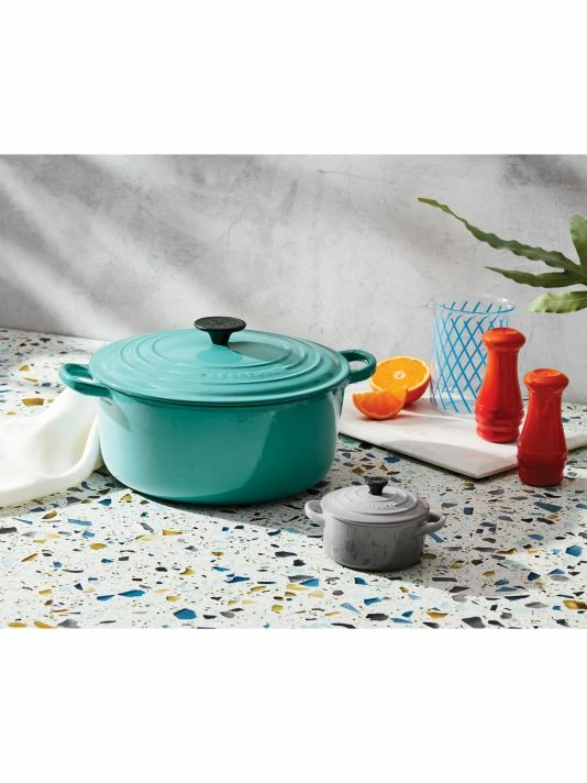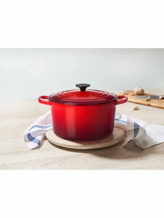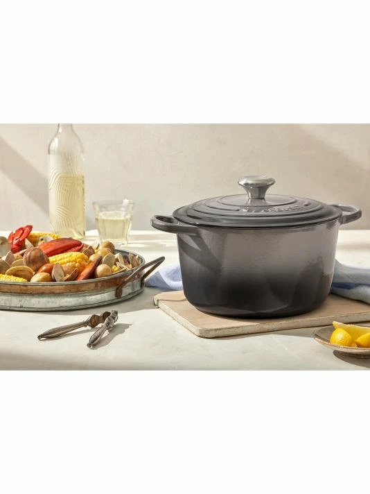 This deep round Dutch oven is a versatile tool for slow-cooking, roasting, baking, and frying from stove to oven to table. Extra-depth contains splatters and reduces boilovers, while the tall sides lock in flavor and increase capacity without taking up precious stovetop space. It’s ideal for simmering soups, stews and stocks, boiling pasta, frying chicken, and more.