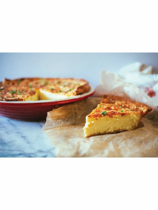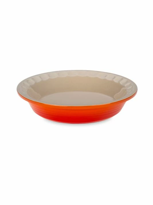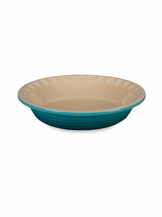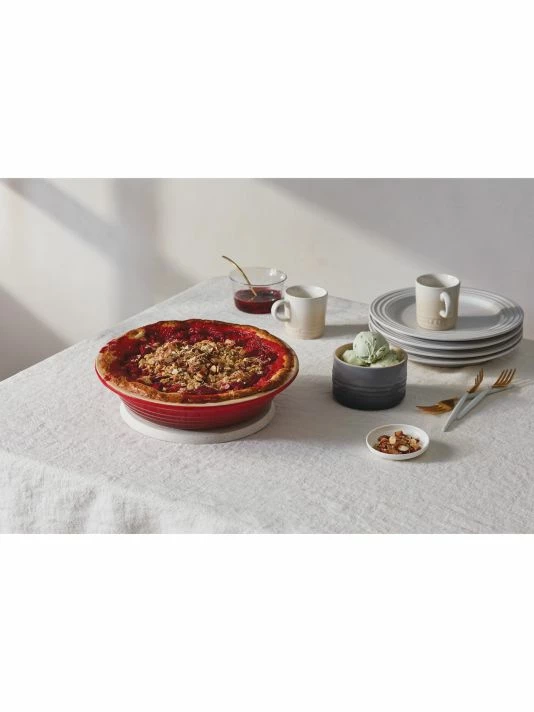 This traditionally styled pie dish completes a sophisticated and durable set.