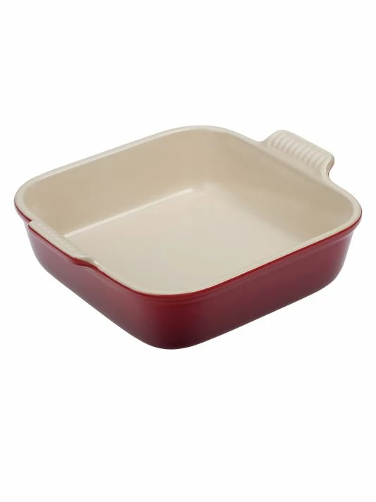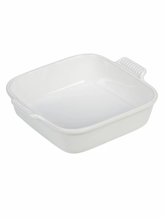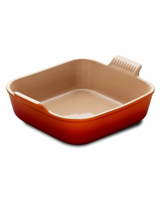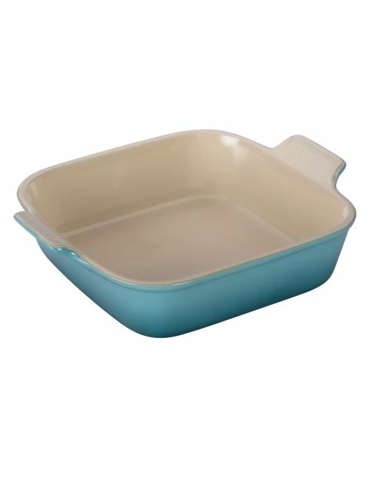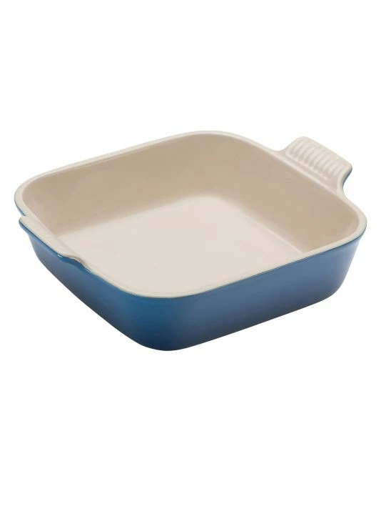 - From baking to oven-roasting, the Heritage stoneware square dish is a functional all-in-one design that stands up to years of use with a durable finish and solid ceramic construction that’s stronger than typical earthenware. This particular design features slightly higher side walls, making it ideal for small casseroles, layered baked pastas or even an ice cream cake.