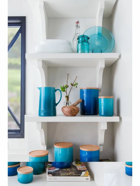 Featuring an air-tight silicone gasket seal and dense stoneware ideal for temperature regulation, this canister is accented with a triple-ring design for a contemporary finish.