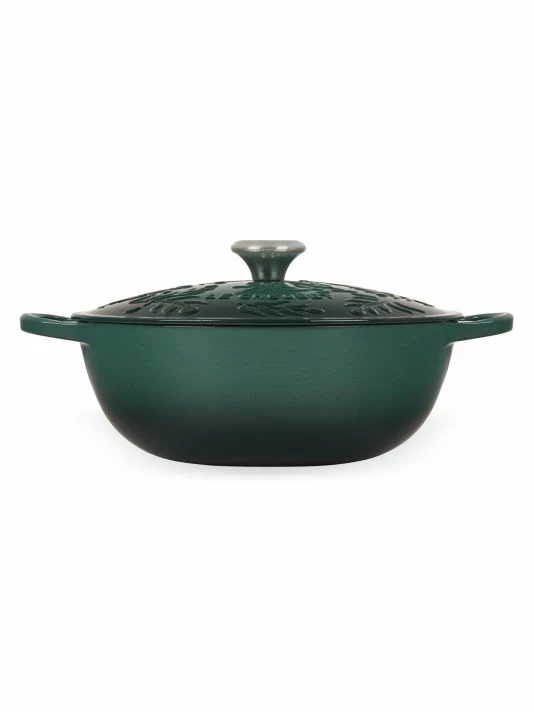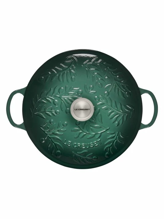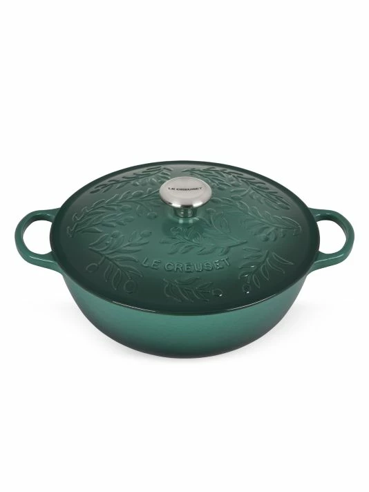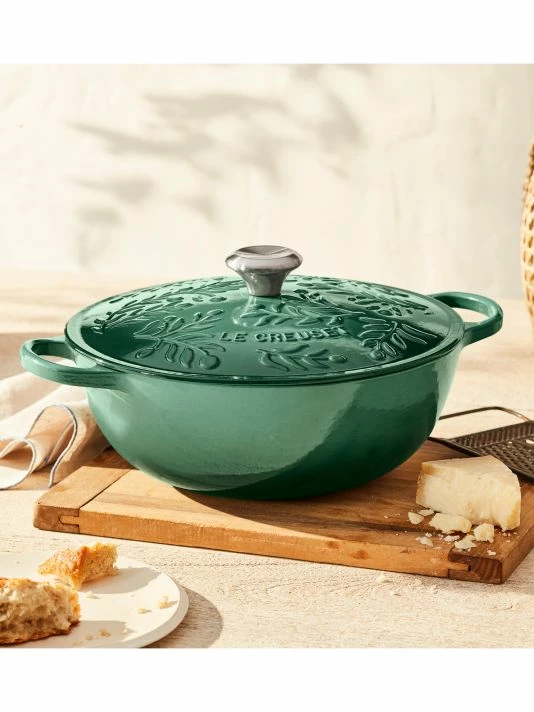 From the Olive Branch Collection. Le Creuset’s Olive Branch collection is embossed with a refined olive branch motif inspired by the sun-drenched fields of Provence. The pattern is a sophisticated addition to any kitchen and can be paired with both calming neutral tones or bold colors to create an expressive Mediterranean moment. Both functional and beautiful, this Cast Iron Soup Pot effortlessly transitions from oven to table for elegant serving.