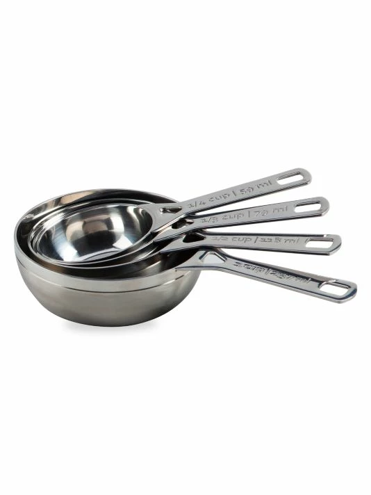 A must-have in any kitchen, these measuring cups give precise measurements for baking and cooking. Made of heavy-gauge stainless steel with a polished and brushed finish, they’re also dishwasher-safe.