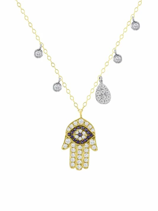 Delicate chain necklace with mixed diamond and sapphire-studded charms.