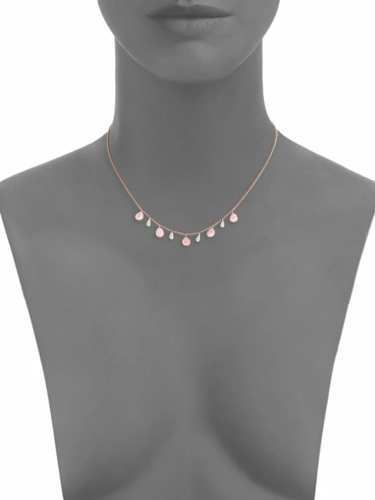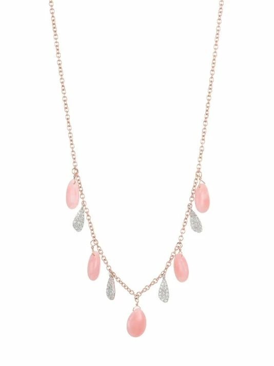 Stunning pink opals and diamonds adorn this rose gold and while gold necklace with diamonds.