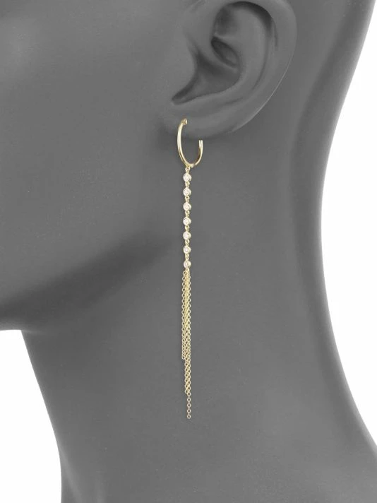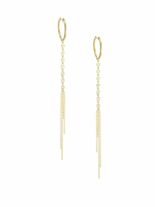 Sleek hoop drop earrings with dainty diamond accents.