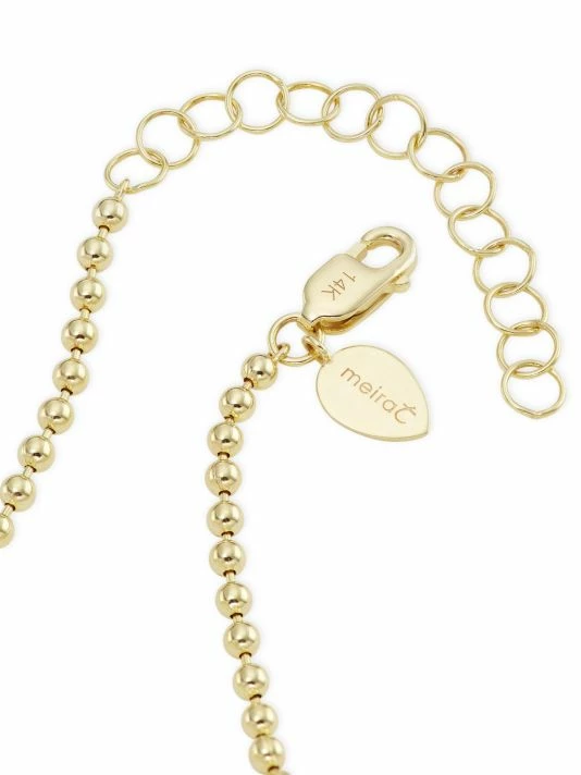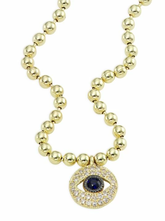 Made of 14K yellow gold, this ball chain bracelet features a round evil eye charm that sparkles with pavรฉ white diamonds and a single center blue sapphire.