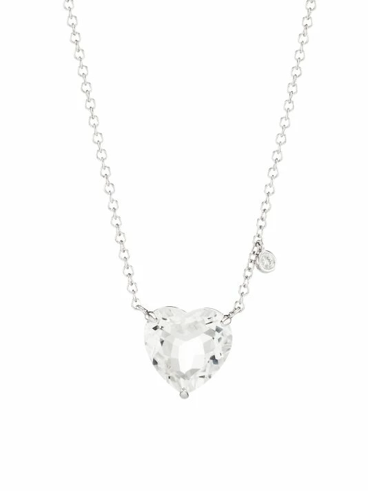 Shimmering heart shaped topz adorns this polished chain necklace.